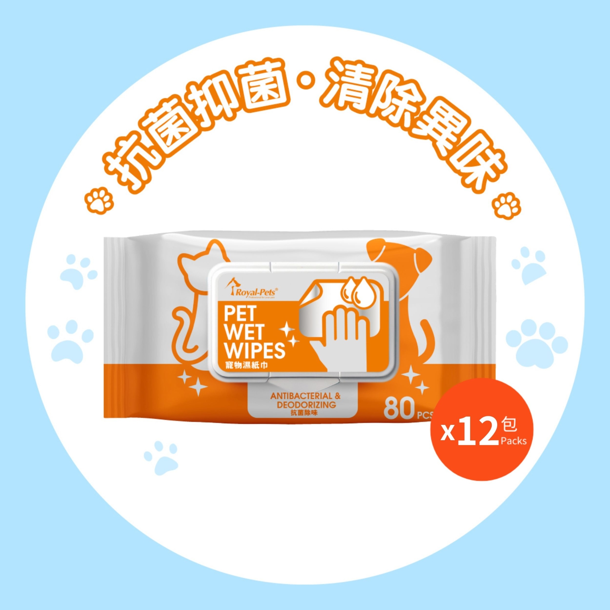 Royal-Pets Pet Wet Wipes 80'S (12 packs)